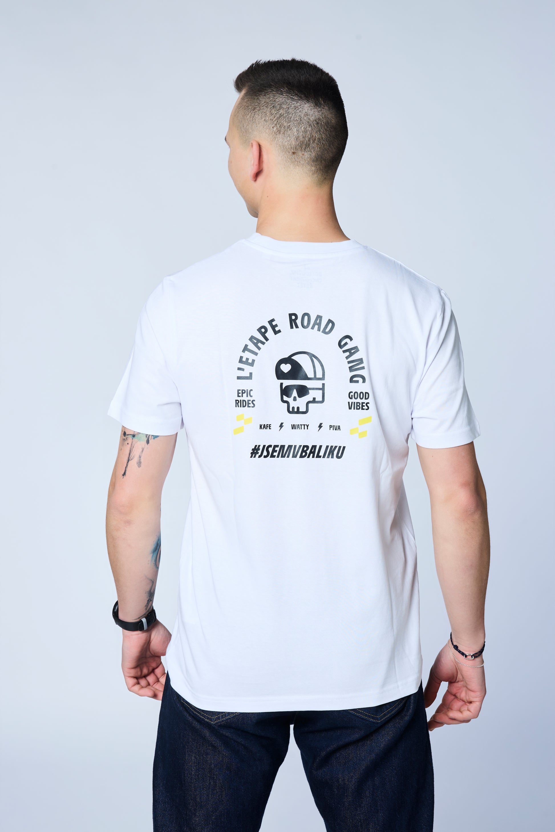 Bílé triko L'Etape Road Gang s motivy kafe, wattů, piva.