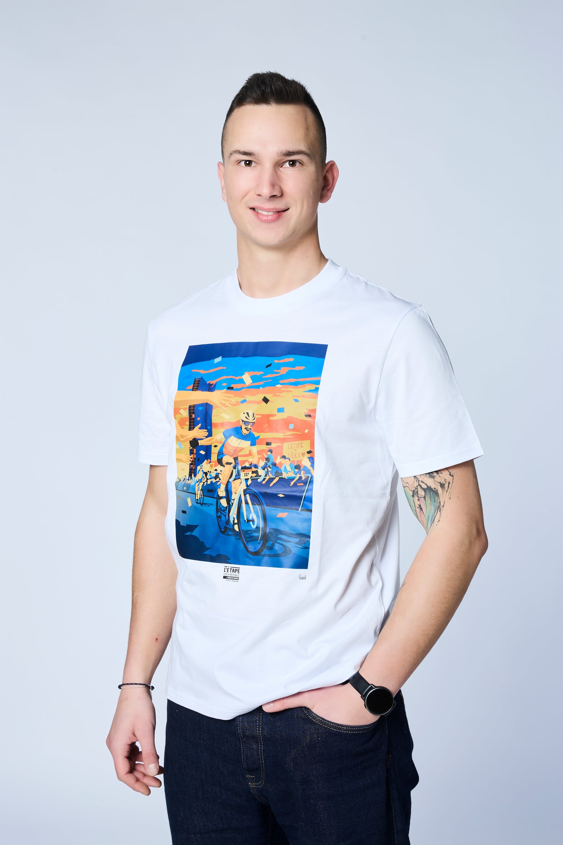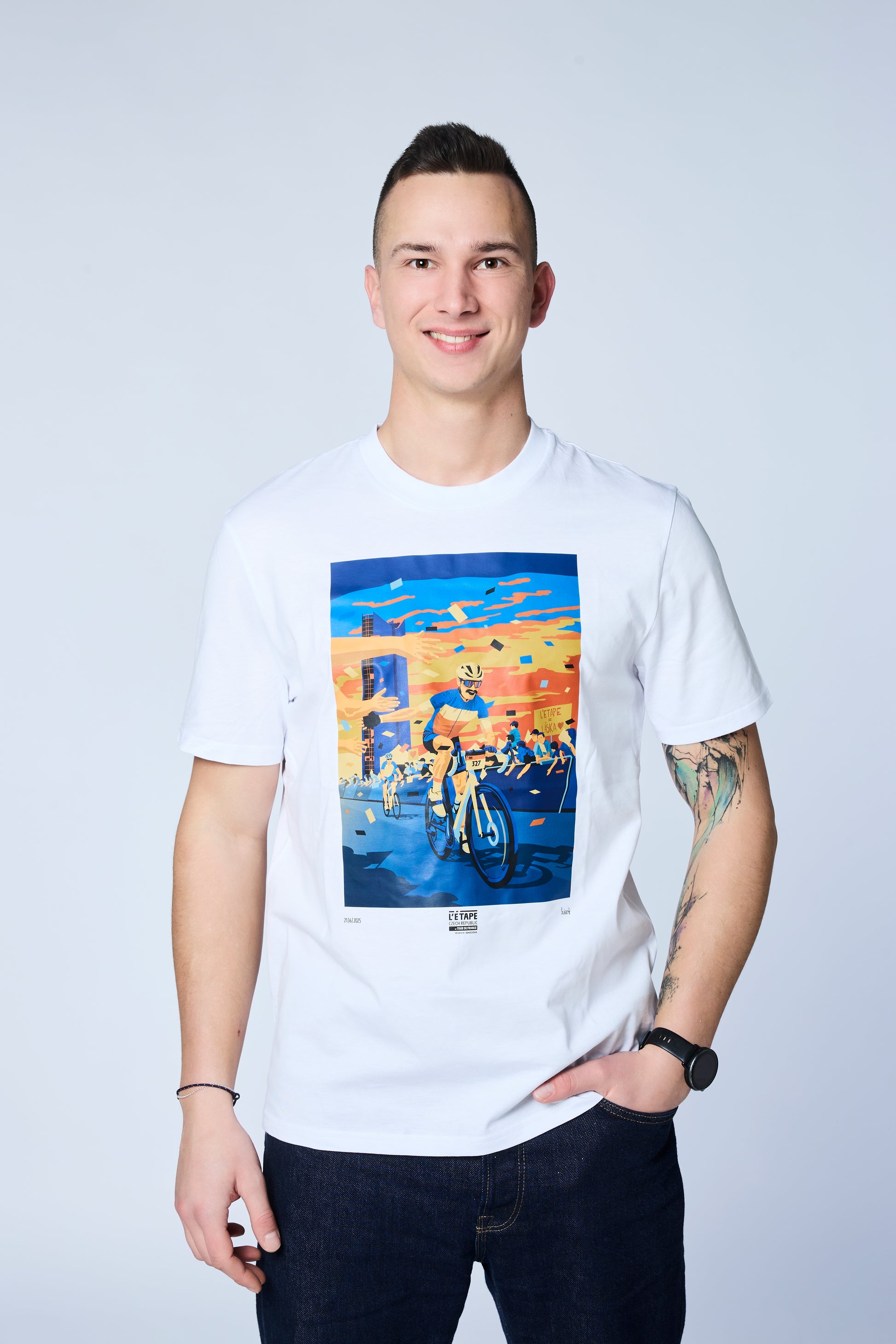Kvalitní triko s exkluzivní grafikou od vizuálního umělce Jana Šrámka, na které nechybí závodníci, fanoušci, high fives ani ikonické výdechy ze strahovského tunelu.
