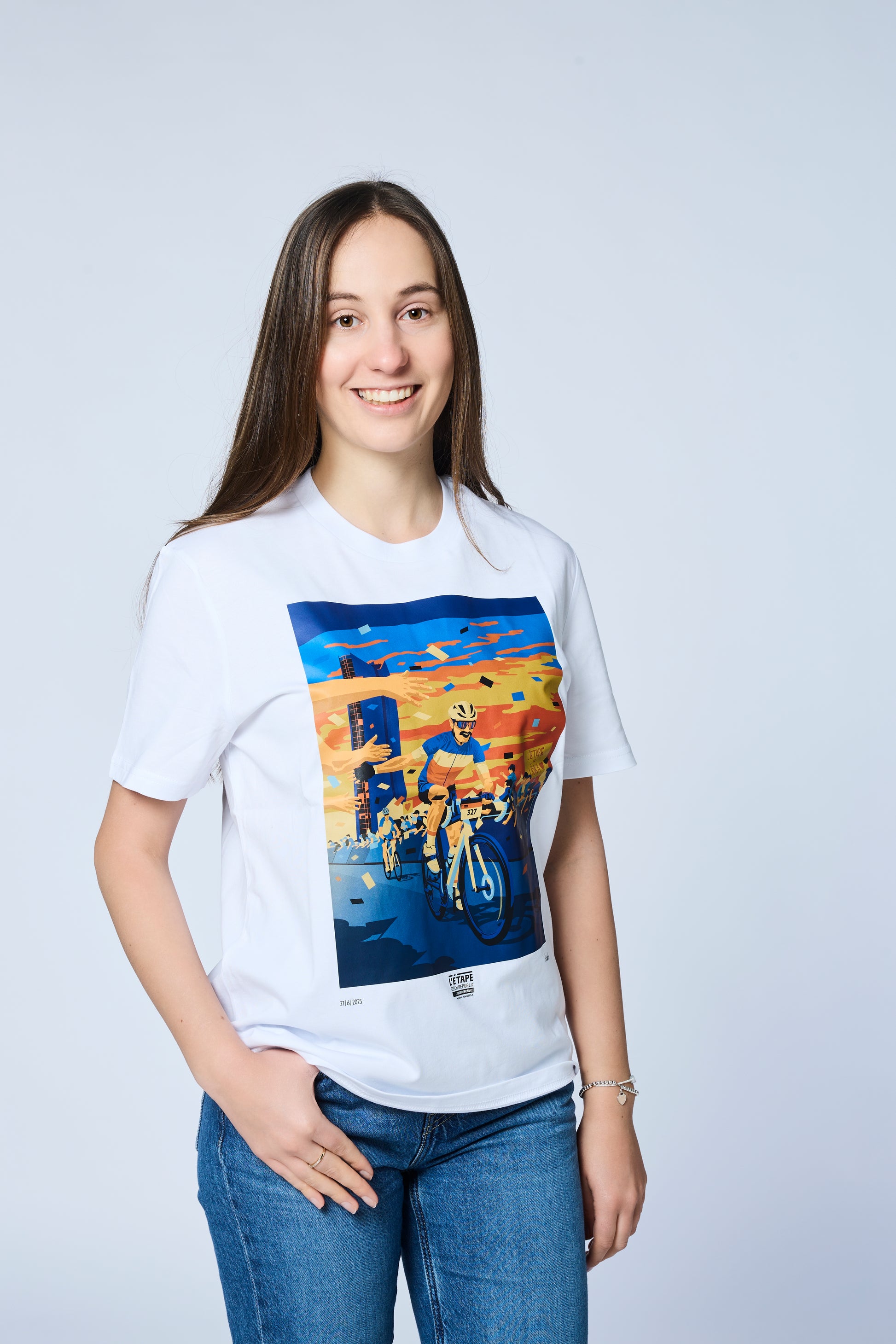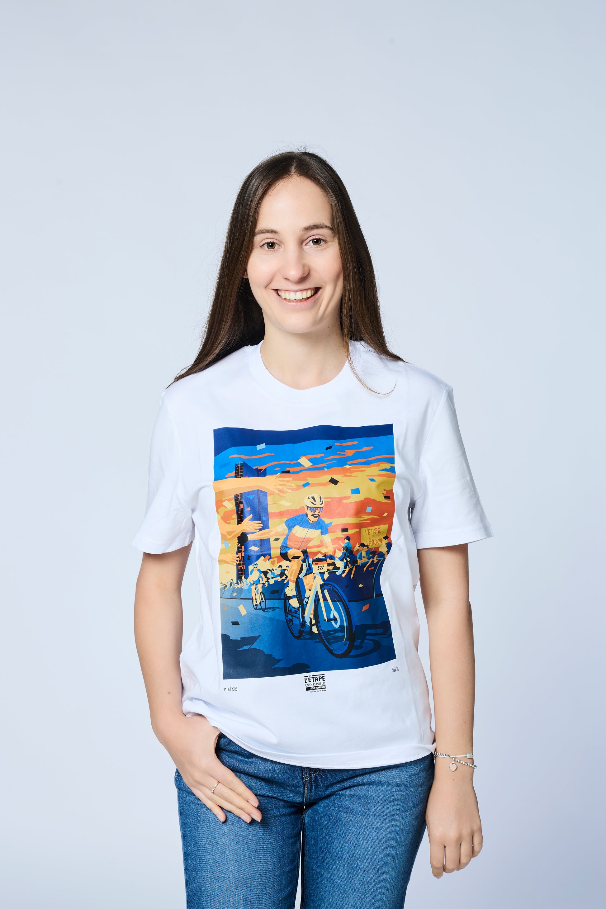 Bílé triko s motivem Kopcovité L'Etape 2025